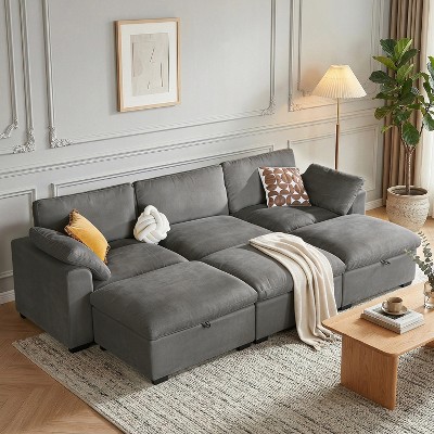 Dyonery Oversized Modular Sectional Sofa,Cloud Futon Loveseat Couch with Storage Ottoman, Solid Wood Frame, Tool Free Assembly