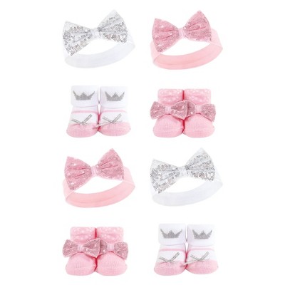 Hudson Baby Infant Girl 8Pc Headband and Socks Set, Princess, 0-9 Months
