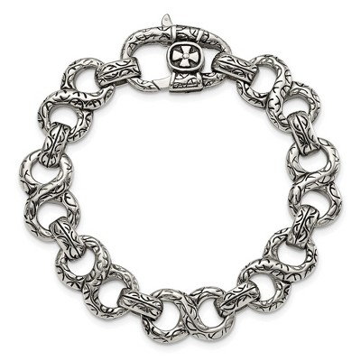 Chisel Stainless Steel Antiqued Polished and Textured 8.5" Infinity Symbol Link Bracelet
