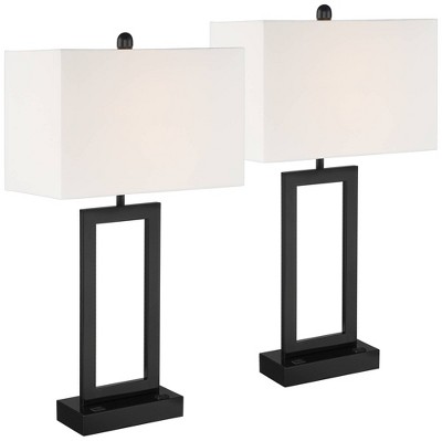 360 Lighting Todd 30" Tall Large Rectangular Modern End Table Lamps Set of 2 USB Port AC Power Outlet Black Metal Living Room Charging White Shade
