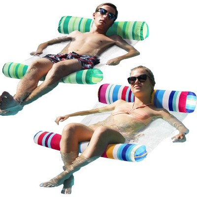 Jasonwell 2 Pack XL Inflatable Fabric Water Hammocks - Multi-Purpose Pool Floats for Adults, Sky Blue & Hot Pink
