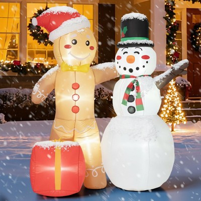 Itopfox 6ft Inflatable Christmas Decoration Gingerbread Man Snowman Gift Box Built-in LED Lights for Outdoor Indoor Lawn Garden 1 Piece