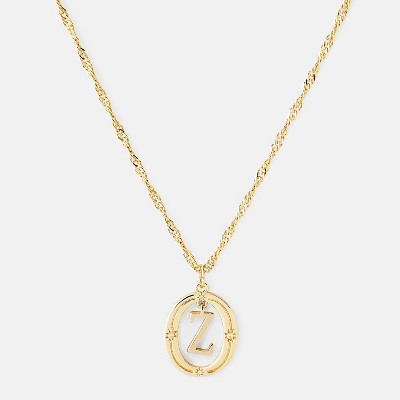 14k Gold Dipped Cubic Zirconia Letter Open Oval Initial Pendant Necklace - A New Day™ Gold