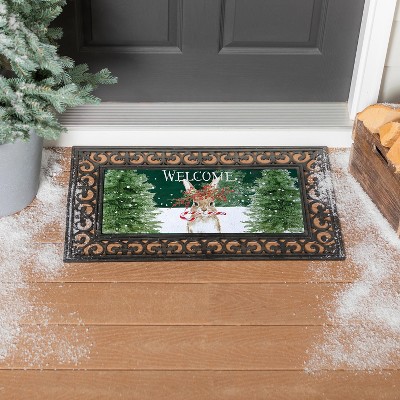 Evergreen Holiday Christmas Sassafras Switch Mat 22" x 10", Interchangeable Front Door Mat, Winter Sassafras Doormat Inserts (Candy Cane Rabbit)