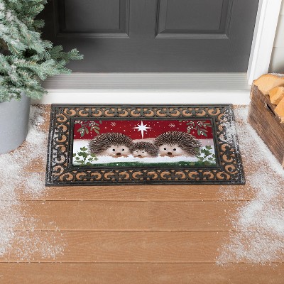 Evergreen Holiday Christmas Sassafras Switch Mat 22" x 10", Interchangeable Front Door Mat, Winter Sassafras Doormat Insert (Hedgehog)
