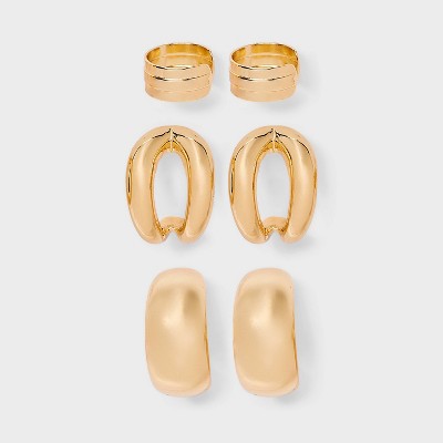 Chunky Hoop Earring Set 3pc - A New Day™ Gold: Nickel-Free Metal, Post Closure, 0.74" Length