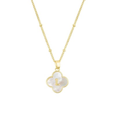 Adornia 14k Gold Plated Mother-of-Pearl Initial Clover Necklace