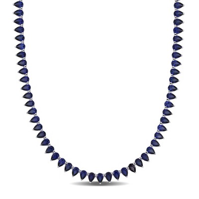 EVERLY JEWELRY | Sterling Silver 44.5 CT TGW Created Blue Sapphire Tennis Necklace, 18-inch