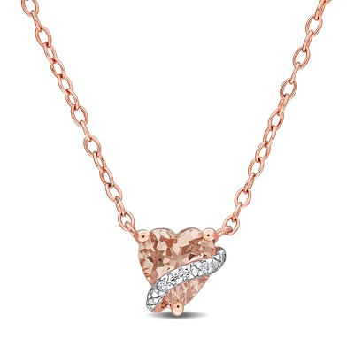 EVERLY JEWELRY | Rose Plated Sterling Silver 3/4ct TGW Created Emerald and 1/10ct TDW Diamond "MOM" Pendant with Chain, 17 inc