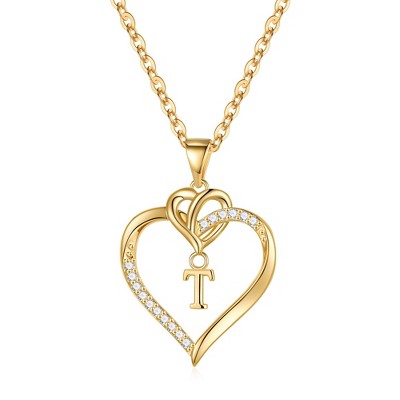 Turandoss 18K Gold Heart Initial Necklace for Women Girls, Dainty Zircon Pendant Necklace, Birthday Gifts for Women Girls, Gold Jewelry, 18+2.5In