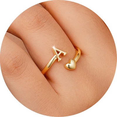 Turandoss Gold Plated Initial Rings for Women Girls Adjustable, Dainty Cute Open Rings Non Tarnish, Fashion Jewelry, Birthday Easter Gifts for Women