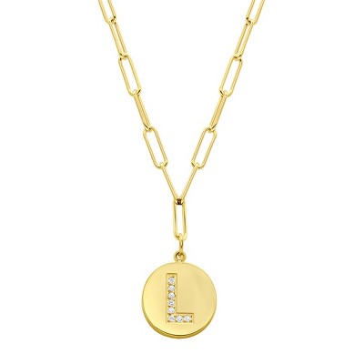 Adornia Tarnish Resistant 14k Gold Plated Initial Pave Disc Necklace
