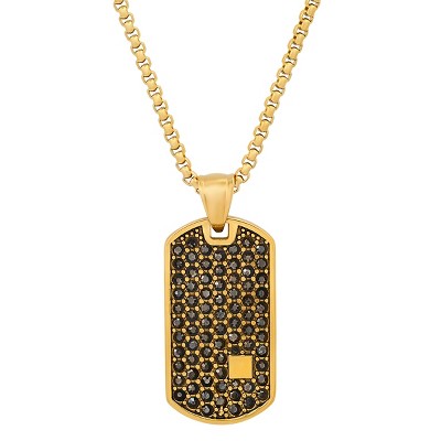 Steeltime 24" Men's 18k gold plated stainless steel and simulated black diamonds dog tag pendant