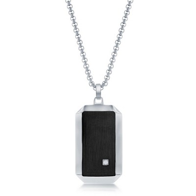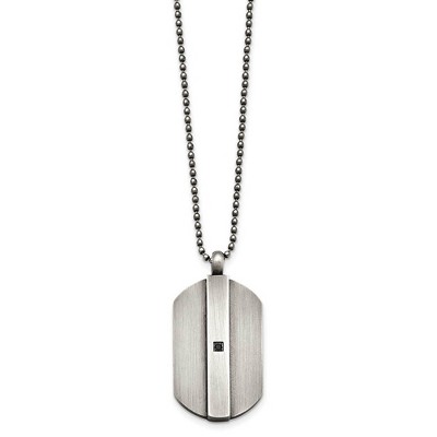Black Bow Jewelry Antiqued Brushed Stainless Steel & Black CZ Dog Tag Necklace, 20 Inch