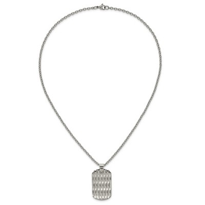 Chisel Stainless Steel Polished Diamond-cut Dog Tag on a Cable Chain Necklace 24"