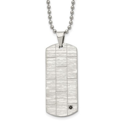 Black Bow Jewelry Stainless Steel Black CZ Polished & Satin Dog Tag Necklace, 20 Inch