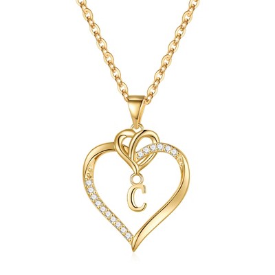 Initial Necklace - 18K Gold Plated Heart Pendant with A-Z Letters, Dainty Birthday Gift for Women and Teen Girls