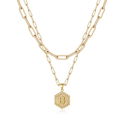 Turandoss 2PCS Dainty Gold Necklace for Women Girls - Layered Initial Pendant Necklaces, Gold Jewelry for Women, Birthday Gifts for Girls 8-18