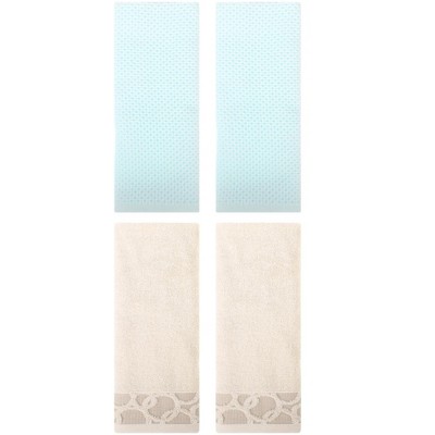 REGALWOVEN 4 Pcs Solid Textured Cotton Soft Absorbent Decorative Hand Towel