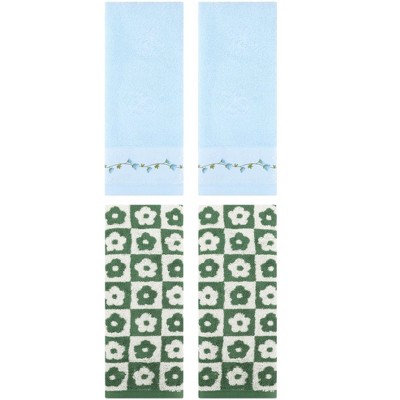 REGALWOVEN 4 Pcs Cute Floral Soft Absorbent Decorative Bathroom Hand Towel
