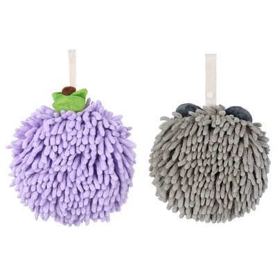 REGALWOVEN Chenille Fuzzy Ball Cute Cartoon Decorative Hand Drying Hanging Hand Towel for Bathroom 7" x 7" 2 Pcs