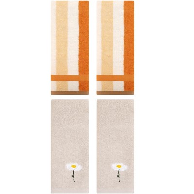 REGALWOVEN 4 Pcs Bathroom Decorative Cotton Soft Absorbent Sold Striped Hand Towel
