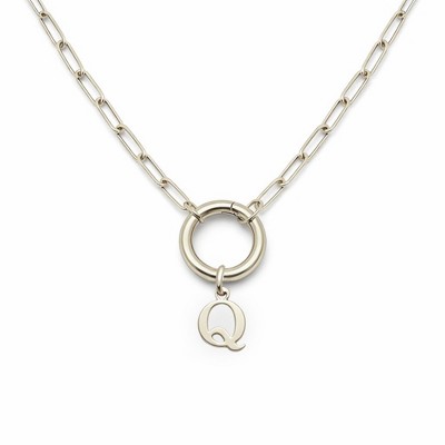 Paperclip Link Circle Carabiner Intial Letter Charm Holder Necklace for Women Stainless Steel 20" Ginger Lyne
