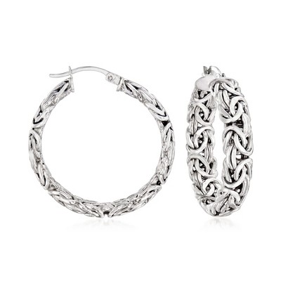 Black Bow Jewelry Twisted Oval Hoop Earrings in Sterling Silver - 20mm (3/4 Inch)