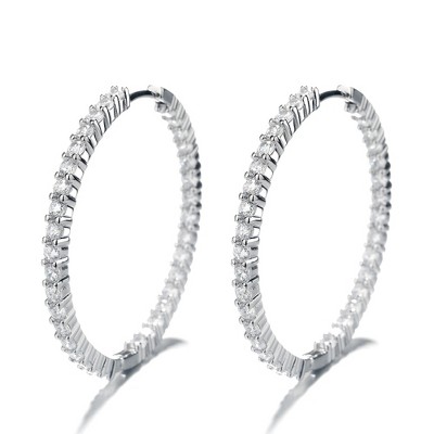 18K White Gold Plated Inside Out Hoop Earrings with crystals- 40mm