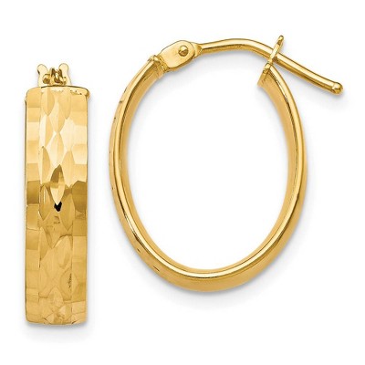Black Bow Jewelry 4.3mm 10k Yellow Gold Diamond Cut Oval Hoop Earrings, 21mm(13/16 Inch)