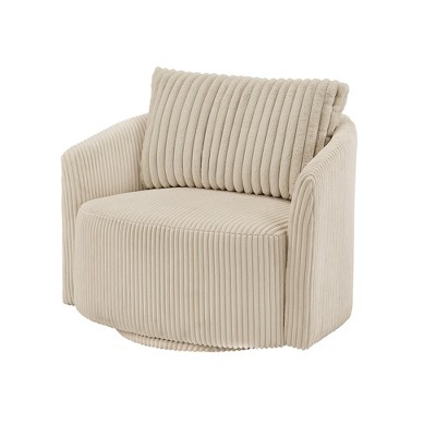 Louth Courduroy Swivel Accent Chair with Pillow - Beige - iNSPIRE Q