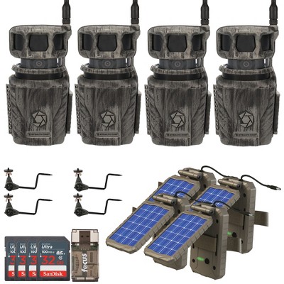 Stealth Cam Revolver 36MP Pro 360 Degree Cellular Trail Camera with Solar Battery Camera Holder 32GB Memory Cards and Card Reader (4 Pack)