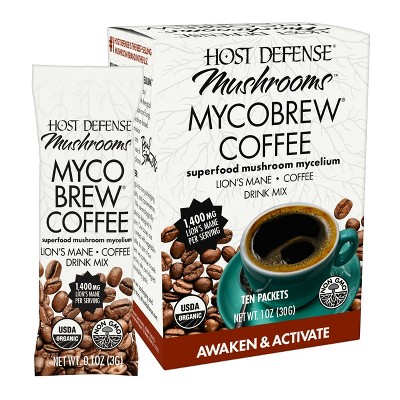 Host Defense MycoBrew Instant Coffee Drink Mix with Lion's Mane Mushroom, 1oz - 10 Packets (0.1 oz each)