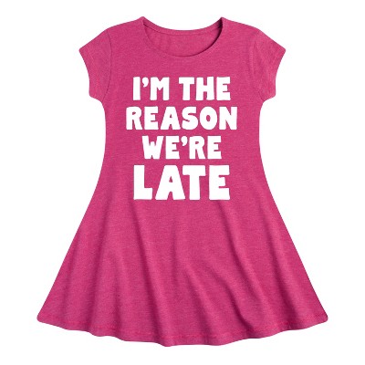 Girls' - Instant Message - I'm The Reason We're Late Fit & Flair Cap Sleeve Graphic Dress