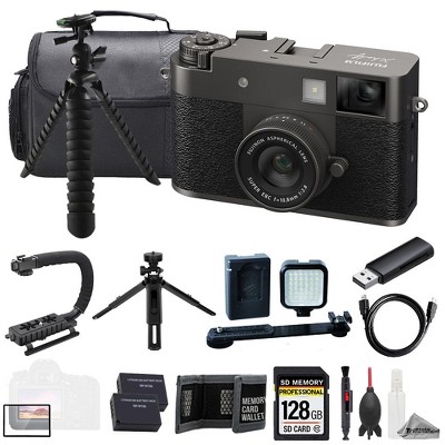 FUJIFILM X half Compact Digital Camera (Charcoal Silver) Ultimate Kit with 128GB Memory Card, LED Light & Tripods