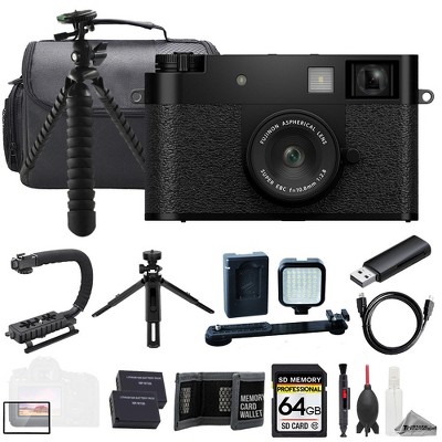 FUJIFILM X half Compact Digital Camera (Black) Ultimate Kit with 128GB Memory Card, LED Light & Tripods