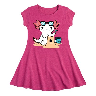 Girls' - Instant Message - Sun, Fun, & Sandcastles Fit & Flair Cap Sleeve Graphic Dress
