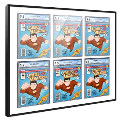 PosterPalooza | Comic Book Frame for 6 Graded Comics - Black Wood with White Mat Comic Frame - 30x30