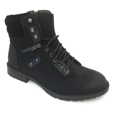 Men's Ankle Boots Black Combat Fashion Causal Lace up Side Zipper Fur Lined Warm Shoes