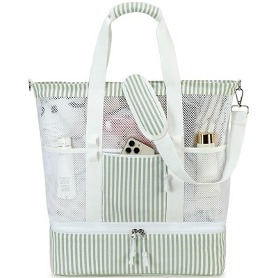 Narwey Mesh Beach Tote Bag with Cooler Compartment Insulated Detachable Picnic Bag with Zipper