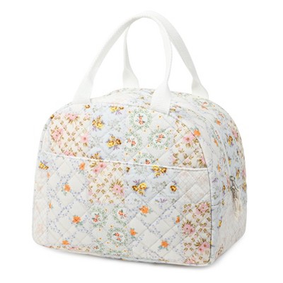 Narwey Lunch Box for Women Quilted Insulated Lunch Bag Tote Cute Reusable Floral Cotton