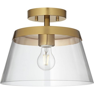 Possini Euro Design Everly 12" Modern Semi Flush-Mount Ceiling Light Fixture Kitchen Foyer Hallway Warm Brass Finish Glass Bedroom Bathroom Entryway