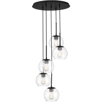 Possini Euro Design Carrine 20" Modern Pendant Chandelier Ceiling Light Fixture Dining Room Over Table Hanging 6-Light Black Gold Finish Crystal