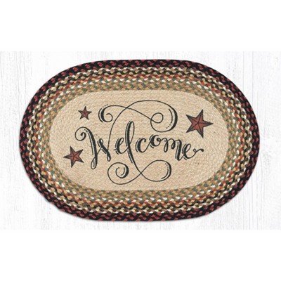 Earth Rugs Welcome Barn Stars Oval Rug – 20"x30" Hand-Braided Jute Accent Mat with Folk Star & Rustic Farmhouse Design