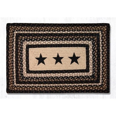Earth Rugs Black Stars Oblong Patch Tread 20"x30" – Hand-Stenciled Braided Jute Mat with Americana Flair