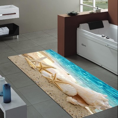 Lomsoe 1pc Bathroom Kitchen Floor Mats, Long Beach Sea Star Carpets, Flannel Memory Sponge Floor Mats for Living Room.