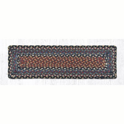 Earth Rugs Burgundy/Blue/Gray Rectangle Stair Tread 27"x8.25" – Hand-Braided Jute Rug in Rustic Americana Color Palette