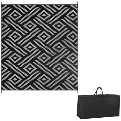 Resenkos Floor Mat Carpet,Indoor Door Mat,Reversible Outdoor Rug Carpet RV Camping Rugs with Carry Bag, 9' x 12', Black & Gray Geometric 143" Black