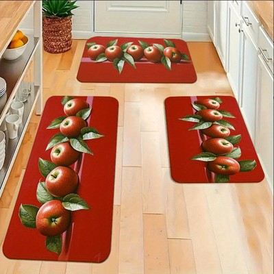 Lomsoe 2/3pcs Apple Red Leaf Fruit Element Kitchen Mat Set | Suitable for Kitchen Living Room Bathroom Bedroom Decoration Home Courtyard.
