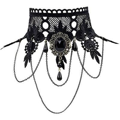 Summit Adventure Steampunk Black Lace Choker Necklace, Gothic Vampire Costume Jewelry for Women and Teens